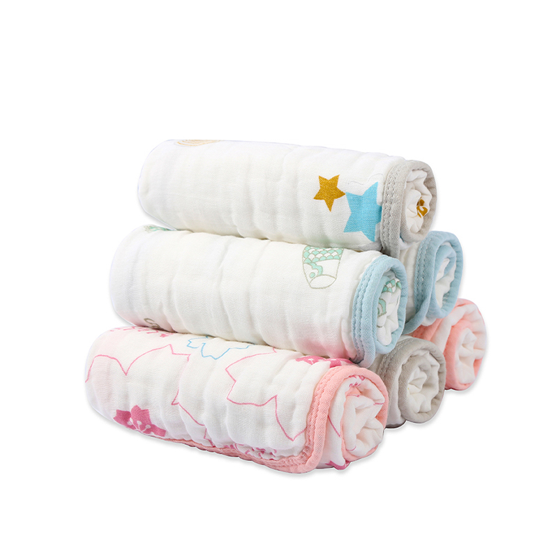 مصنوعة من 6 طبقات من قماش الشاش الناعم المسامي، هذه المنشفة ناعمة ولطيفة على الجلد. إنه عالي الامتصاص، ويمتص العرق وبقع الماء بسرعة لحماية بشرة طفلك الحساسة. تصميم الخطاف يجعل من السهل تعليقه وتخزينه، مما يعزز الراحة. الحواف مزينة بزخرفة ملونة منعشة؛ تضيف الألوان الناعمة غير اللامعة لمسة من الحيوية إلى تصميمه البسيط، مما يسهل التعرف عليه. خفيف الوزن وخفيف الوزن، ويجف بسرعة دون الشعور بالاختناق، وهو متين ولن يتشوه بسهولة بعد الغسيل، مما يجعله مناسبًا لغسل الوجه اليومي وتجفيف اليدين والسفر.
