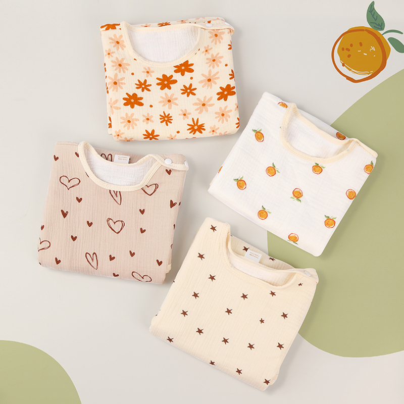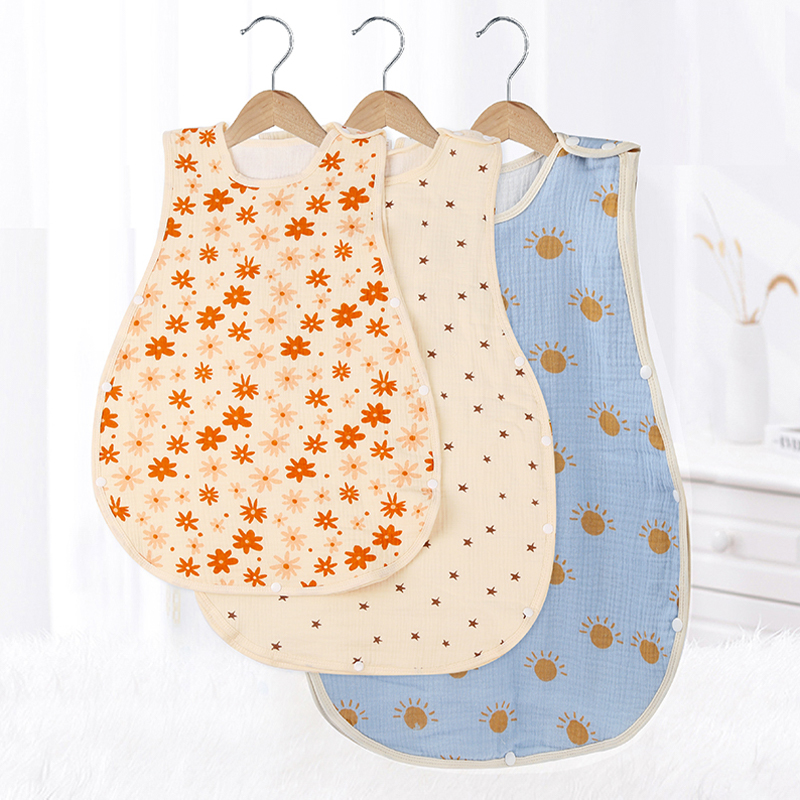 كيس النوم بطبعة الكريب مصنوع من خيوط قطن الكريب بنسبة 100%، ناعم وصديق للبشرة وجيد التهوية. توفر ست طبقات من الشاش غلافًا دافئًا ومريحًا، مما يحمي بشرة طفلك الحساسة. الأزرار الموجودة على الكتفين تجعل من السهل ارتداؤها وخلعها، حتى في الليل، مما يجعلها مريحة وخالية من المتاعب للآباء. يضمن التصميم المكون من قطعة واحدة مع التصميم المفتوح بالكامل حرية حركة طفلك وسلامته، مما يقلل من أي شعور بالقيود، مما يجعله مناسبًا للاستخدام طوال الليل. يضيف النمط المطبوع الجميل والحيوي متعة وسحرًا طفوليًا إلى حياة طفلك. خفيفة الوزن، قابلة للتنفس، دافئة وعملية، حقيبة النوم هذه ذات طبعة الكريب مناسبة للنوم اليومي وحملها عند الخروج. إنها قطعة أساسية من معدات النوم المريحة لنمو طفلك، مما يضمن ليلة آمنة ودافئة كل ليلة.