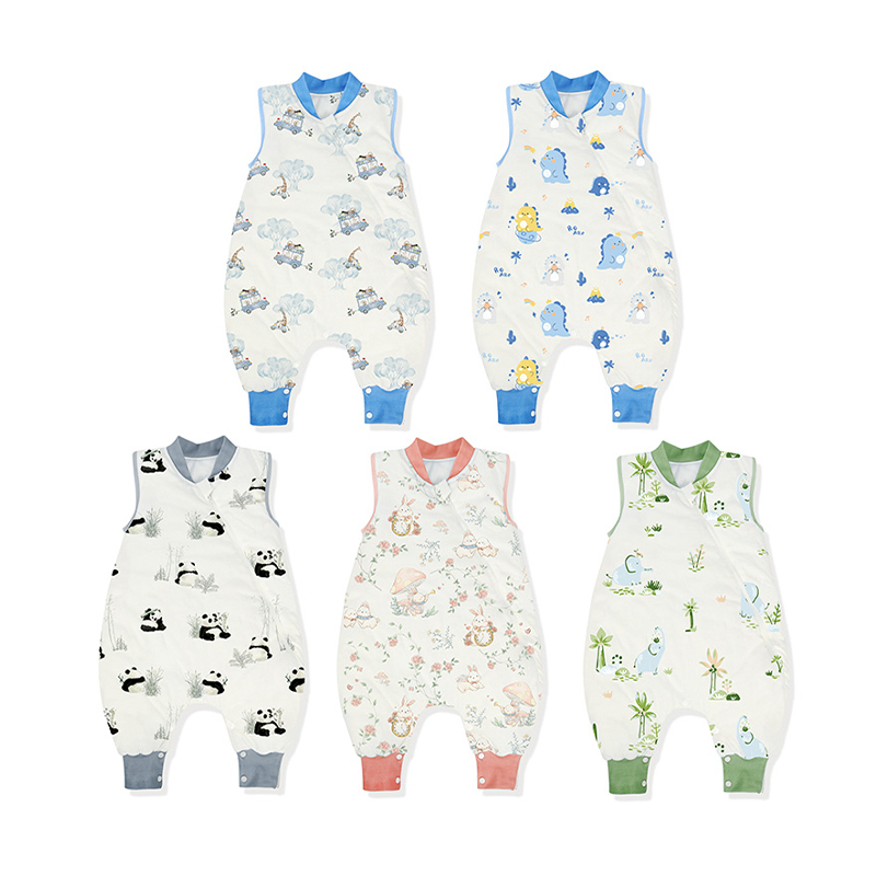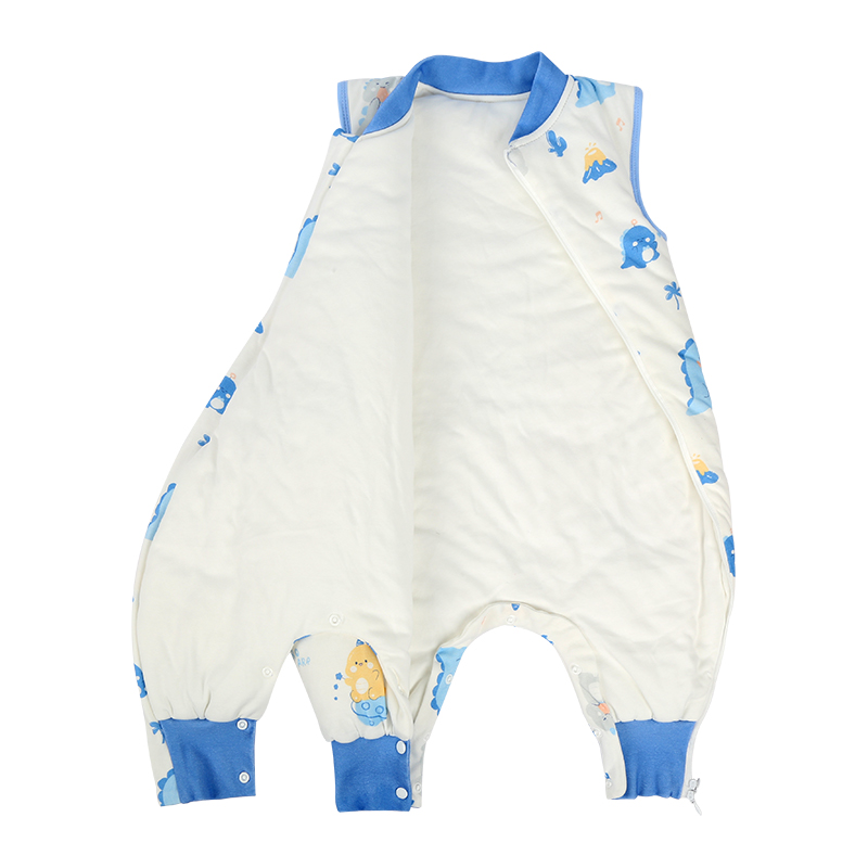 تستخدم أكياس النوم هذه عادةً مزيجًا من القطن الخالص أو قطن الخيزران. القطن الخالص ناعم وصديق للبشرة وجيد التهوية، مما يحافظ على بشرة الطفل جافة؛ تجمع خلطات قطن الخيزران بين خصائص ألياف الخيزران المضادة للبكتيريا والممتصة للرطوبة مع راحة القطن، وتصبح أكثر نعومة مع الارتداء. لا يعيق نمط السترة بدون أكمام حركة ذراع الطفل، مما يسمح بسهولة التدحرج والركل بالساق، مما يتيح حرية الحركة داخل كيس النوم مع تجنب خطر التشابك من الأكمام الطويلة جدًا. تصميم مضاد للركل: يمنع هذا النوع من أكياس النوم الطفل بشكل فعال من ركل البطانية، مما يبقيه دافئًا بغض النظر عن مقدار حركته، مما يلغي حاجة الوالدين إلى الاستيقاظ عدة مرات في الليل لتغطيته، مما يجعله أكثر ملاءمة. التصميم التفصيلي: عادة ما يكون لخط العنق حواف ناعمة لمنع الاحتكاك تحت ذقن الطفل؛ يتم توسيع الحاشية بحيث يمكن للطفل أن يتجعد دون الشعور بالضيق؛ يتميز المنفرج بزر نصف مفتوح أو تصميم بسحاب، مما يجعل من السهل على الآباء تغيير الحفاضات دون الحاجة إلى إزالة كيس النوم بالكامل.
