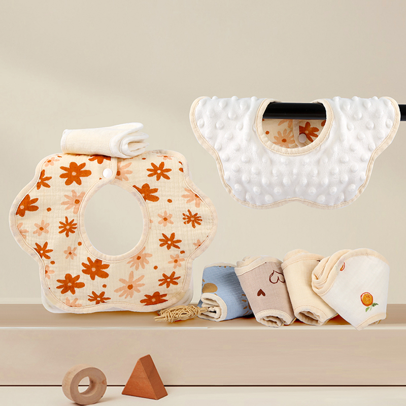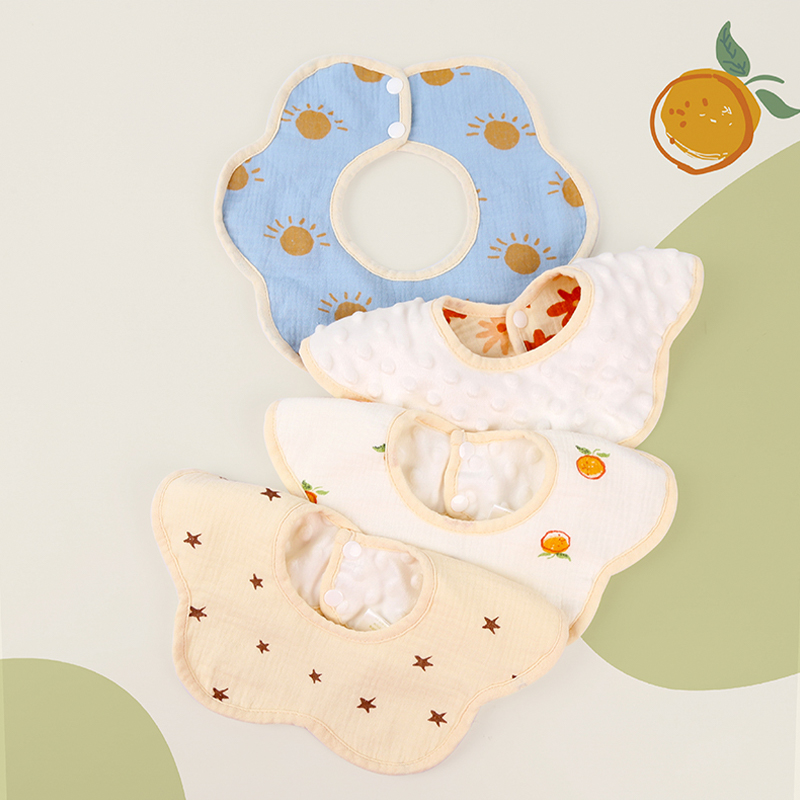 مريلة البتلة الفخمة مصنوعة من قماش فخم ناعم وصديق للبشرة، مما يوفر ملمسًا رقيقًا ومريحًا مع حماية بشرة طفلك الحساسة بلطف. تتميز المريلة بتصميم فريد من نوعه مع حواف بنفس لون القماش، مما يخلق مظهرًا موحدًا وجميلًا من الناحية الجمالية. يتوافق شكل البتلة الدوارة بزاوية 360 درجة مع منحنى الرقبة، مما يوفر استخدامًا مرنًا ومريحًا مع إضافة لمسة من المرح. تتوفر ألوان وأنماط مخصصة، مما يسمح لك بإنشاء مريلة مخصصة لتناسب تفضيلاتك الفردية أو احتياجات أسلوبك. سواء للوجبات اليومية أو النزهات أو جلسات التصوير، فإنه يمتص اللعاب وبقايا الطعام بسرعة، مما يحافظ على جفاف طفلك ونظافته.