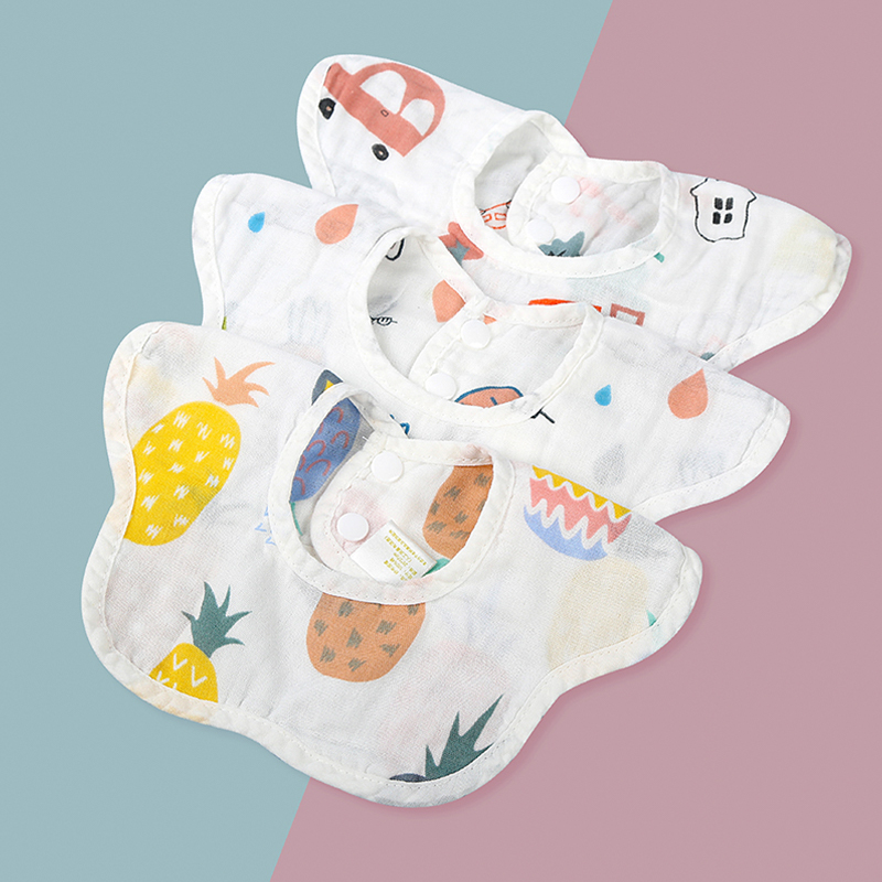 This four-layer gauze petal bib is specially designed for babies. Made from select Class A pure cotton gauze, its four-layer structure is fluffy and breathable, wicking away moisture and preventing skin irritation. The adorable 3D petal design is eye-catching and easily creates a cute outfit. It fits snugly around the neck without constricting, and the adjustable snaps accommodate various baby ages. Durable and resistant to washing, it won't deform or pill, providing extra protection during spit-up and complementary feeding.