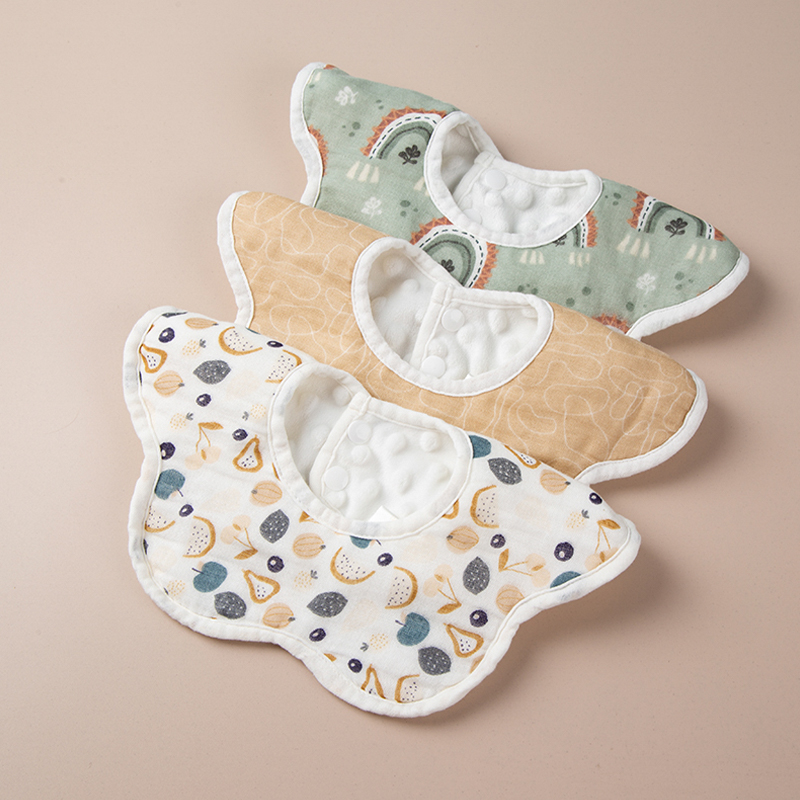 مصنوعة من نسيج صوفي ناعم ورقيق تم اختياره بعناية، وتتميز المريلة بألياف ممتلئة ثلاثية الأبعاد تعطي ملمسًا رقيقًا ولطيفًا على الجلد. قدرة امتصاصه القوية تحبس اللعاب وبقع الحليب بسرعة، مما يحافظ على جفاف الملابس. التصميم على شكل بتلة ينثني بشكل طبيعي، مما يخلق طبقات مميزة ويوفر تغطية أوسع، مما يوفر الحماية والجاذبية الزخرفية. المريلة مزينة بنمط مطبوع لطيف بألوان ناعمة وممتعة، مما يضيف لمسة من الأناقة إلى الملابس اليومية. يضمن تصميم الإغلاق الآمن ارتداءً سهلاً ومريحًا دون إجهاد الرقبة، مما يجعله مناسبًا للاستخدام أثناء فترات سيلان اللعاب والرضاعة الطبيعية والنزهات.